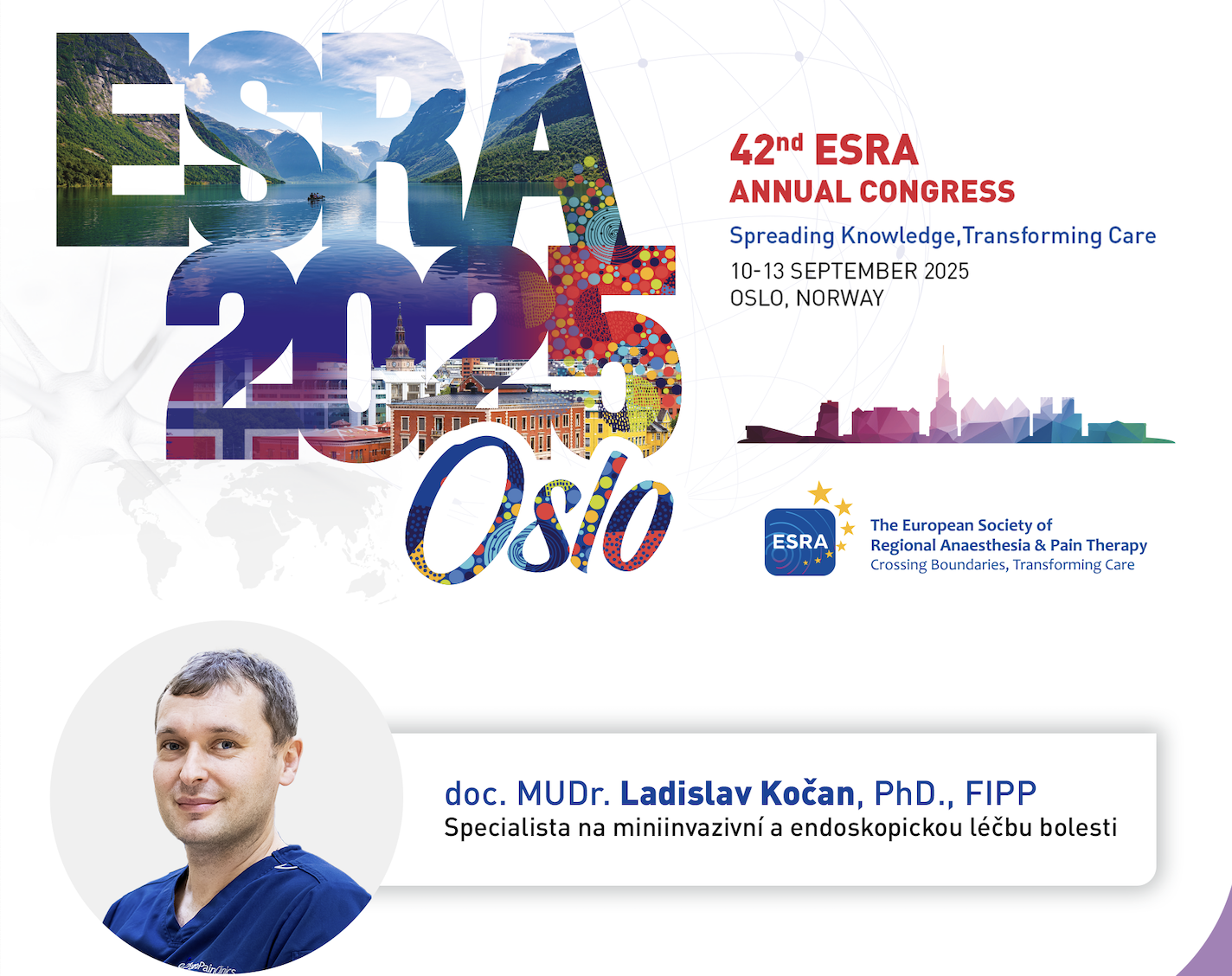 Doc. MUDr. Ladislav Kočan, PhD., FIPP, se zúčastnil 42. výročního prestižního mezinárodního kongresu ESRA 2025 (European Society of Regional Anaesthesia and Pain Therapy), který se konal ve dnech 10. až 13. září v norském Oslu, kde přednesl odborný příspěvek.