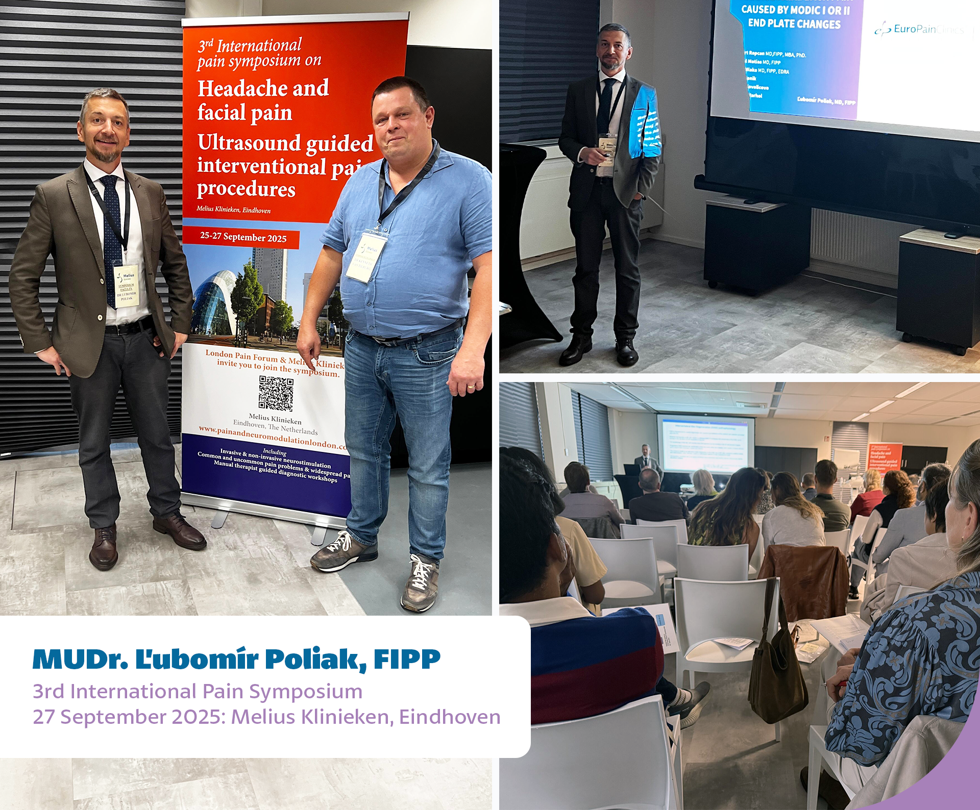 MUDr. Ľubomír Poliak, FIPP, reprezentoval EuroPainClinics na odborné akci 3rd International Pain Symposium, která se konala ve dnech 25.–27. září 2025 v nizozemském Eindhovenu.
